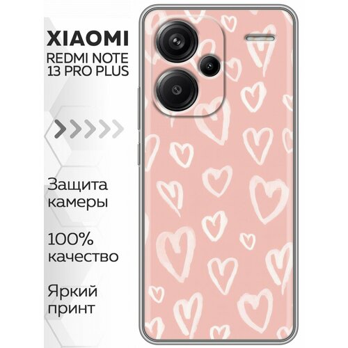 Чехол для Xiaomi Redmi Note 13 Pro Plus 5G с принтом Сердечки розовые (Сяоми Редми Нот 13 Про Плюс 5G)