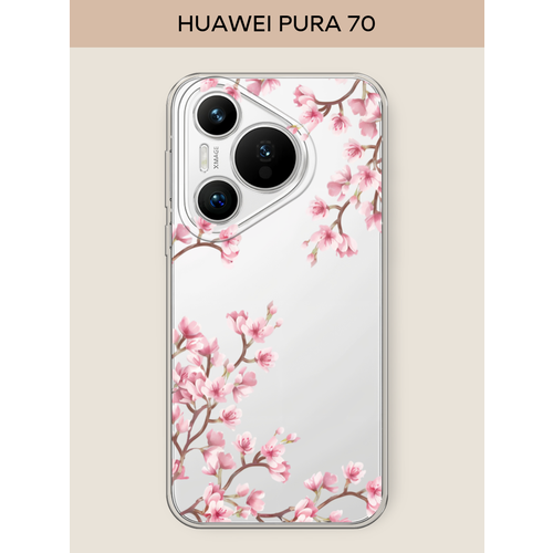 Силиконовый чехол "Весенняя сакура" на Huawei Pura 70 / Хуавей Пура 70, прозрачный