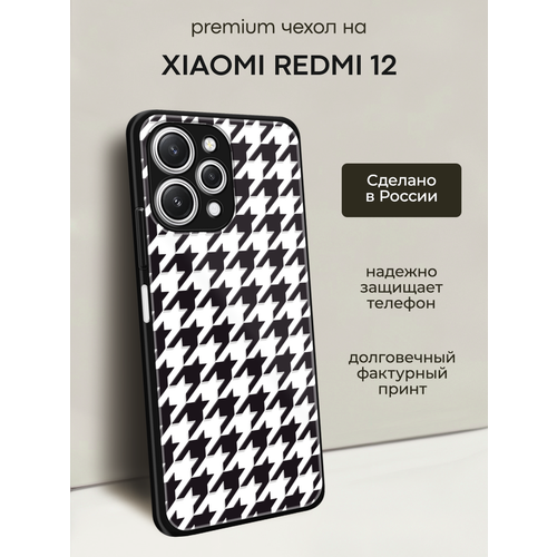 Чехол на Xiaomi Redmi 12 / Сяоми Редми 12 с объемным принтом "Черно-белый паттерн"