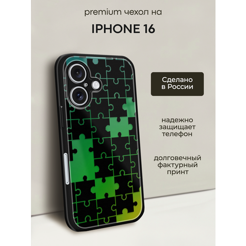 Чехол на Apple iPhone 16 / Айфон 16 с объемным принтом "Зеленый пазл"
