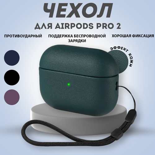 Чехол для AirPods Pro 2 / Защитный чехол с дизайном под кожу HardShell для Аирподс Про 2, Цвет: Зелёный