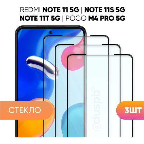 Комплект 3 в 1: Защитное полноэкранное стекло (3 шт) для Xiaomi Redmi Note 11 5G / Note 11S, 11T 5G / Poco M4 pro 5G
