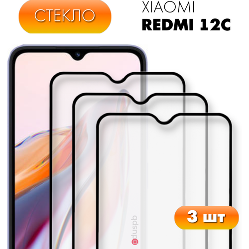 Комплект 3 в 1: Защитное полноэкранное закаленное стекло (3 шт) для Xiaomi Redmi 12C / Ксиоми Ксяоми Сяоми Сиоми Редми 12 Ц