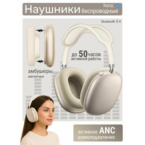HOCO NEW 2025 W65 Plus, беспроводные наушники, бежевый, новинка