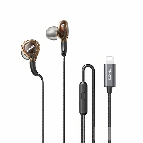 Внутриканальные проводные наушники Remax RM-670 Lightning прозрачный, черный, коричневый