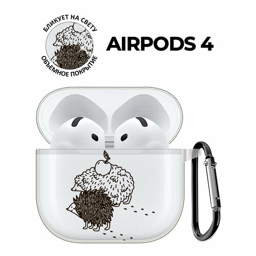Чехол на Apple AirPods 4 с принтом "Funny hedgehogs" прозрачный