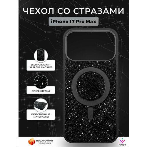 Чехол со стразами с MagSafe для iPhone 17 Pro Max, iGrape (Черный) / чехол на айфон 17 про макс