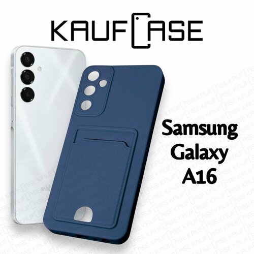 Силиконовый матовый чехол на Samsung A16 5G (6.7"), темно-синий. Карман для пластиковых карт