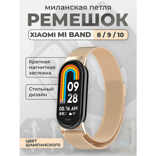 Ремешок для Xiaomi Mi Band 8/9, миланская петля, цвет шампанского