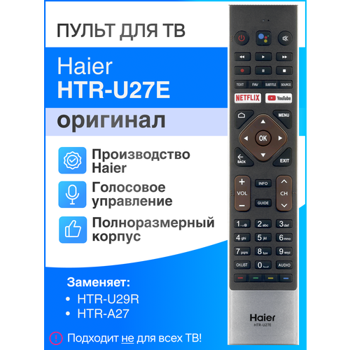 Пульт Haier HTR-U27E orig. для Smart телевизора с голосовым управлением (Google Assistant)