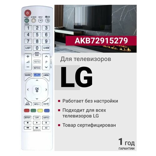 Пульт Huayu AKB72915279 для телевизора LG, белый.