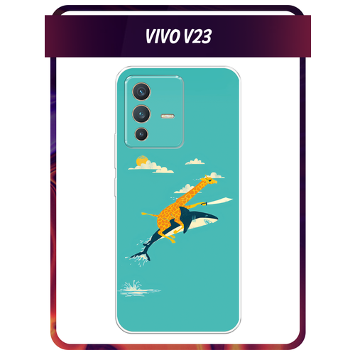 Чехол на Vivo V23 / Виво V23 с принтом Жираф на акуле