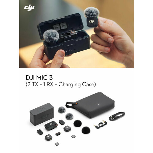 Беспроводной петличный микрофон DJI Mic 3 (2 TX + 1 RX+Charging Case), черный
