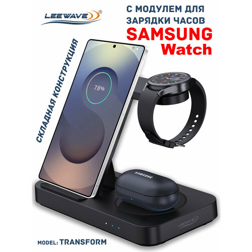 Беспроводная зарядка 3 в 1 для SAMSUNG, док станция QI (модель TRANSFORM) Черная