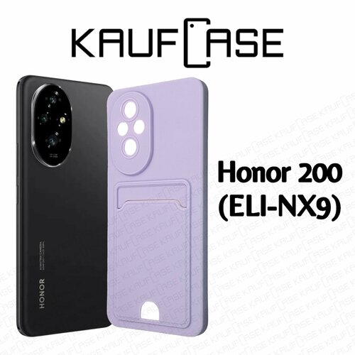 Силиконовый матовый чехол на Huawei Honor 200 (6.7"), сиреневый. Карман для пластиковых карт
