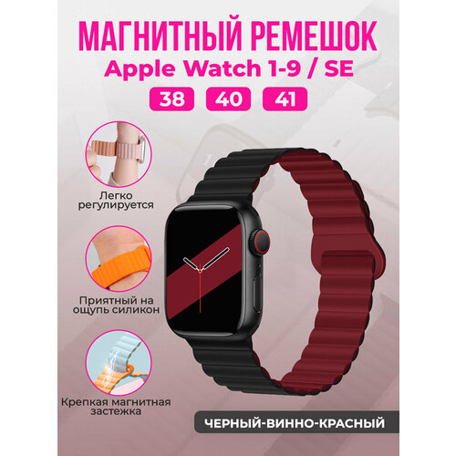 Магнитный силиконовый ремешок для Apple Watch 1-9 / SE / SE 3 (38/40/41 мм), 11, S10/S11, 42 мм, черный-бордовый