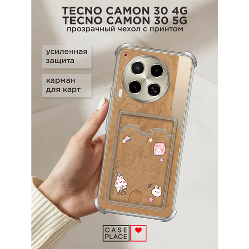 Чехол на Tecno Camon 30 4G/30 5G (Текно Камон 30 4G/30 5G) с картой и принтом Зайка и бабл-чай