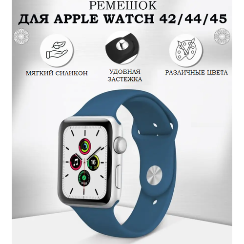 Ремешок силиконовый для Apple Watch 42/44 mm серо-синий