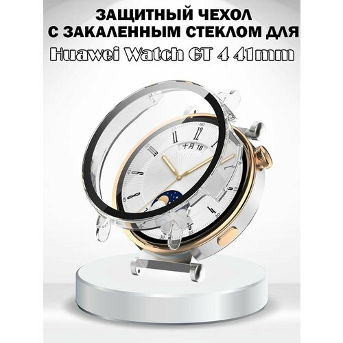 Защитный жесткий чехол с закаленным стеклом для Huawei Watch GT 4 41мм - прозрачный