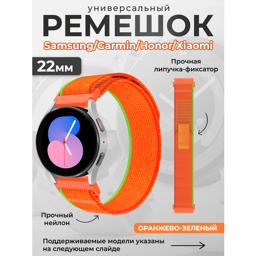 Универсальный нейлоновый ремешок Samsung, Garmin, Huawei, Xiaomi, 22 мм, оранжево-зеленый