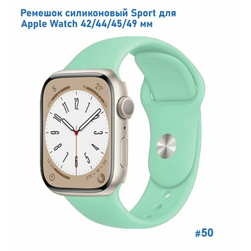 Ремешок силиконовый Sport для Apple Watch 42/44/45/49 мм, на кнопке, ярко-мятный (50)