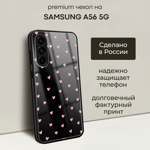 Чехол на Samsung Galaxy A56 5G / Самсунг А56 5G с объемным принтом "Розовые сердечки паттерн 2"