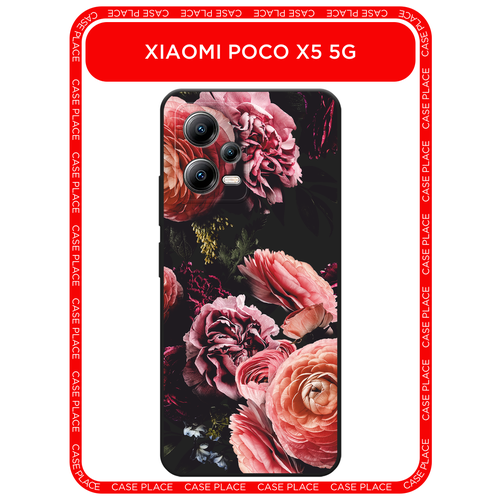 Черный матовый чехол на Xiaomi Poco X5 5G / Сяоми Поко X5 5G с принтом Бордовые винтажные цветы