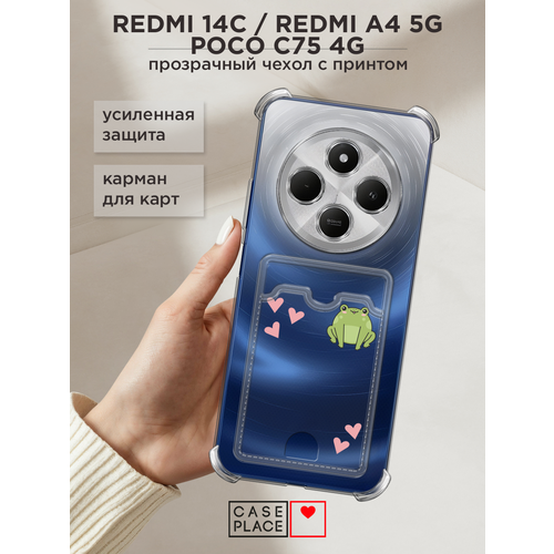 Чехол на Xiaomi Redmi 14C/Poco C75 4G/Redmi A4 5G/Poco M7 5G (Сяоми Редми 14C/Поко C75 4G/Редми А4 5G/Поко M7 5G) с картой и принтом С лягушкой и сердечками