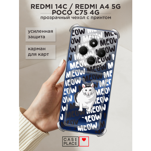 Чехол на Xiaomi Redmi 14C/Poco C75 4G/Redmi A4 5G/Poco M7 5G (Сяоми Редми 14C/Поко C75 4G/Редми А4 5G/Поко M7 5G) с картой и принтом Кот мем