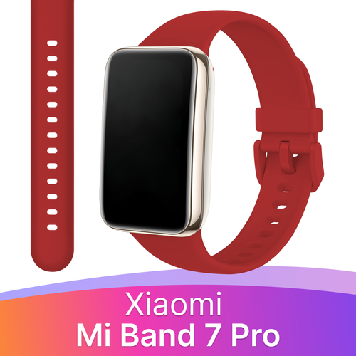 Силиконовый ремешок для смарт часов Xiaomi Mi Band 7 Pro / Спортивный сменный браслет на фитнес трекер Сяоми Ми Бэнд 7 Про / Красный