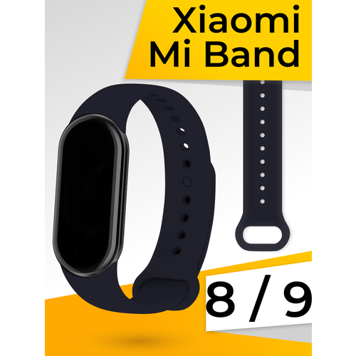 Силиконовый ремешок для умных смарт часов Xiaomi Mi Band 8, Mi Band 9 / Сменный спортивный браслет для фитнес трекера Сяоми Ми Бэнд 8 / Полуночный