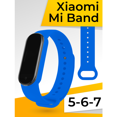 Силиконовый ремешок для умных часов Xiaomi Mi Band 5, 6, 7 / Сменный спортивный браслет для фитнес трекера Сяоми Ми Бэнд 5, 6, 7 / Синий