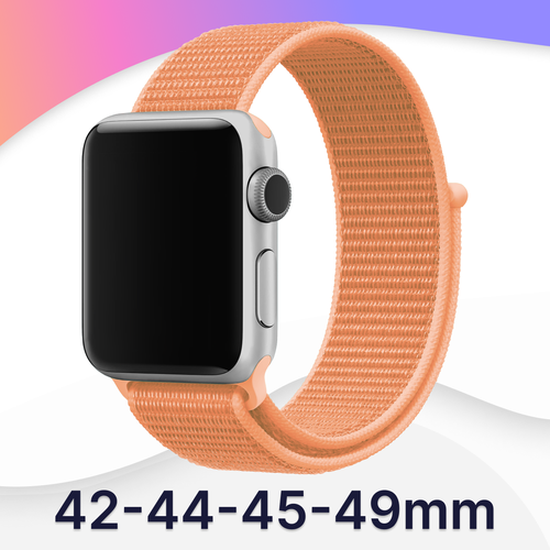 Нейлоновый ремешок для часов Apple Watch series 1-9, SE, Ultra, 42-44-45-49 mm / Браслет на липучке для Эпл Вотч серии 1-9, СЕ, Ультра, 42-44-45-49 мм (Бледно-оранжевый)
