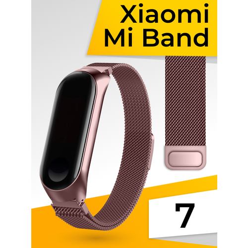 Металлический ремешок для фитнес браслета Xiaomi Mi Band 7 Миланская петля / Браслет для смарт часов на магнитной застежке / Сиреневый