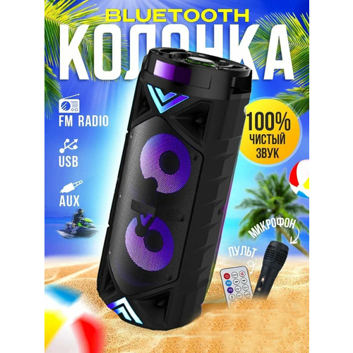Большая беспроводная портативная блютуз колонка с микрофоном, акустическая музыкальная система с aux и usb кабелями, музыка переносная