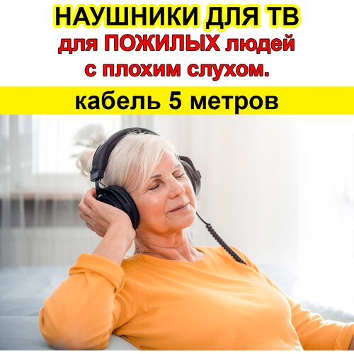 Телевизионные наушники накладные с мягким оголовьем c 5-ти метровым проводом. Наушники для пожилых людей с плохим слухом.