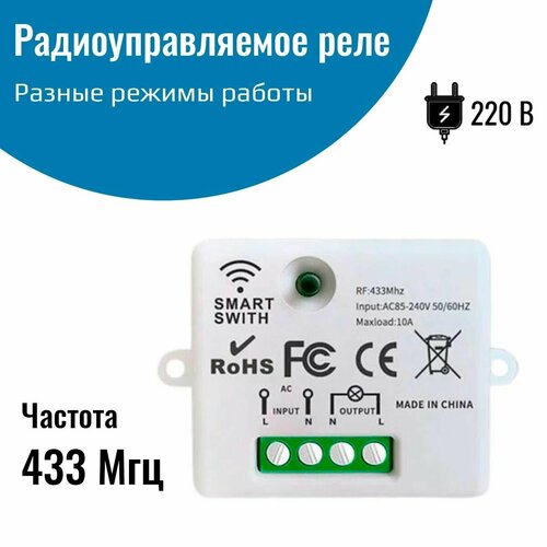 Радиоуправляемое реле 220В 10А 433МГц (без пульта)