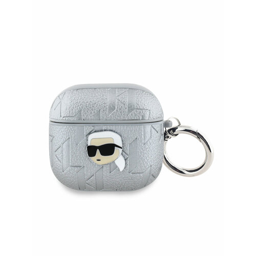Lagerfeld для Airpods 4 чехол PU Saffiano Monogram with ring NFT Metal Head Karl Silver