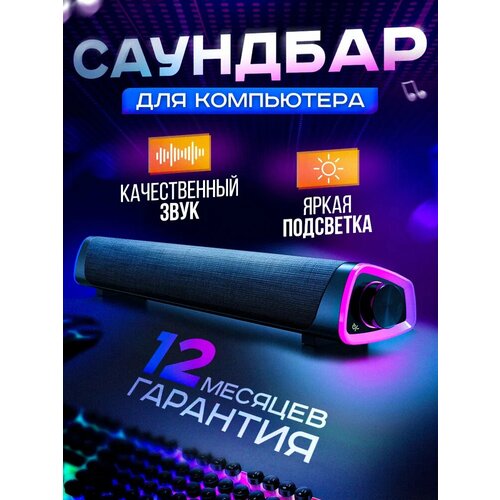 Колонка для компьютера и телефона с подсветкой, саундбар музыкальный для ноутбука и пк