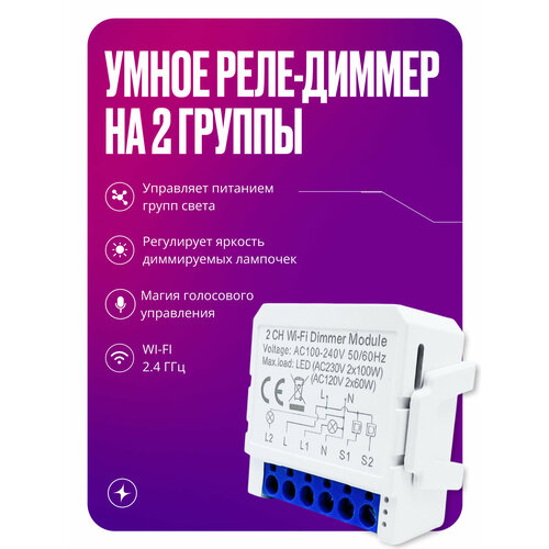 Умное реле Wi-Fi, диммер с нулем, контроллер на 2 канала, 100Вт на группу