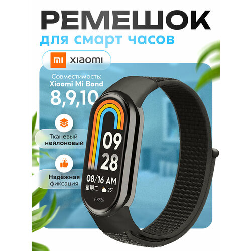 Ремешок для фитнес-браслета Xiaomi Mi Band 8/9/10,. Тканевый нейлоновый спортивный браслет для умных (смарт) часов, сменный браслет на липучке мужской и женский.