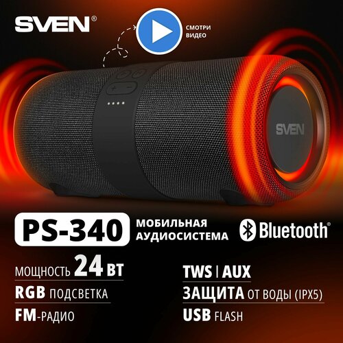 Колонка портативная / Беспроводная колонка SVEN PS-340 / 24 Вт / Waterproof (IPx6) / TWS / Bluetooth / FM / USB / встроенный аккумулятор