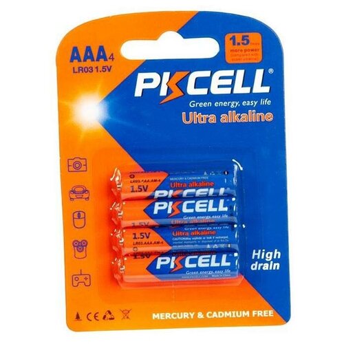 Элемент питания (щелочно/алкали) PKCELL, 1,5 В, мезинчиковая, AAA LR03-4B, 4 шт