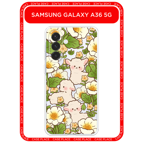 Чехол на Samsung Galaxy A36 5G / Самсунг A36 5G с принтом Овечки в цветах, прозрачный