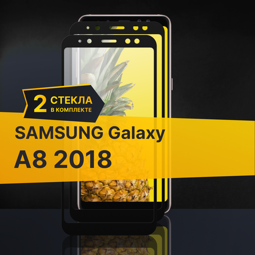 Комплект 2 шт. Противоударное защитное стекло для телефона Samsung Galaxy A8 2018 / Полноклеевое 3D стекло с олеофобным покрытием на смартфон Самсунг Галакси А8 2018 / С черной рамкой
