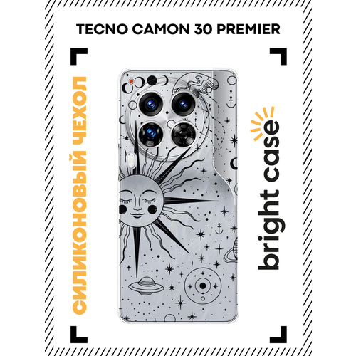 Чехол на Tecno Camon 30 Premier / Текно Камон 30 Премьер с принтом Солнце и узоры, прозрачный