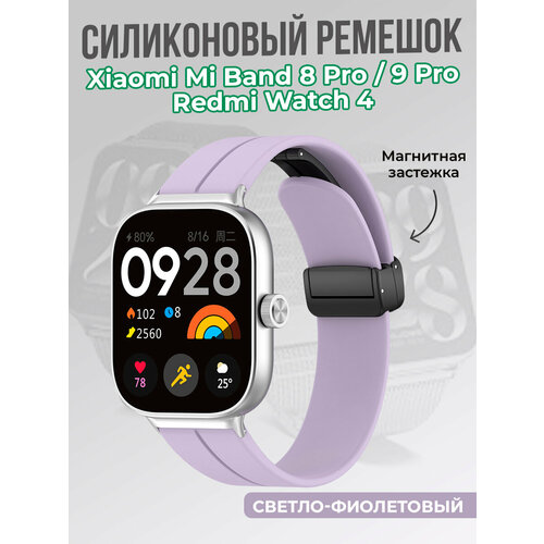 Cиликоновый ремешок для Xiaomi Mi Band 8 Pro / Xiaomi Mi Band 9 Pro / Redmi Watch 4, с магнитной застежкой, светло-фиолетовый