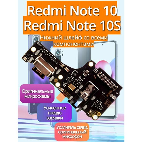 Премиум Нижняя плата (шлейф) / гнездо зарядки для Xiaomi Redmi Note 10 / Xiaomi Redmi Note 10S / Poco M5s на системный разъем/разъем гарнитуры/микрофон с функцией быстрой зарядки со всеми элементами