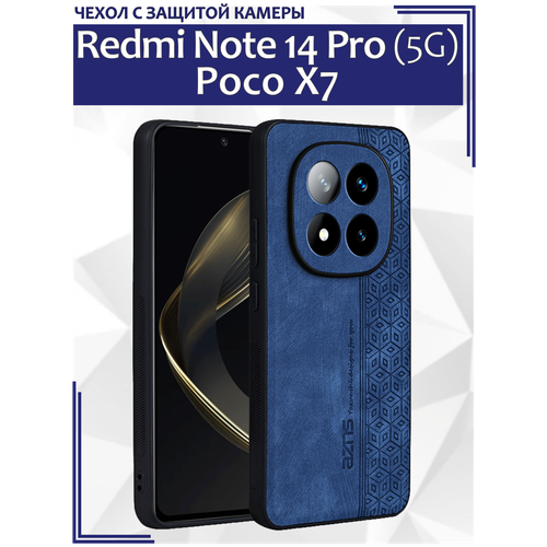 Чехол для Poco X7/ Redmi Note 14 Pro (5G) кожаный с тиснением / Поко Х7 с защитой камеры (синяя)