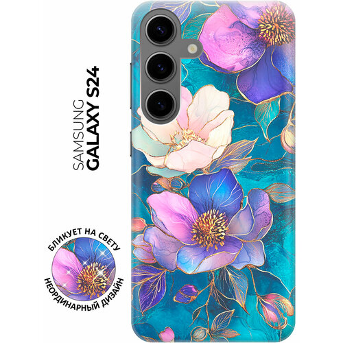 Силиконовый чехол на Samsung Galaxy S24 с принтом "Фиолетовые цветы и листья"